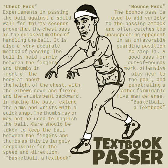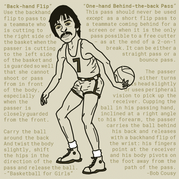 I took inspiration from the instructional diagrams in “Winning Basketball: Individual Play and Team Strategy” written and illustrated by William T. “Buck” Lai in 1955 to create these images of old-school hoopers. Here’s Boogie Cousins in the triple threat,